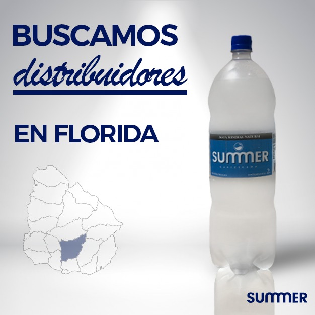 La empresa maragata Summer de agua mineral está buscando distribuidores para el departamento de Florida y sus distintas localidades.Dicha empresa se encuentra presente en todo el país y busca fortalecerse en nuestro departamento.Quienes estén interesados pueden comunicarse de Lunes a Viernes entre las 09:00 y las 18:00 al teléfono de sus oficinas; 4345 3712